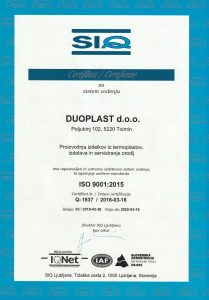 Many years of rich experience in the manufacturing process along with the knowledge gained in the field guarantee the highest quality of all production services of our company, which is confirmed by an international certificate for quality management standard ISO 90001:2015, gained in 2016.